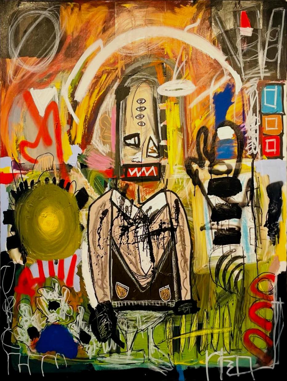 Huile, acrylique, pastels et bombe aérosol sur toile. 2022. Une pièce.