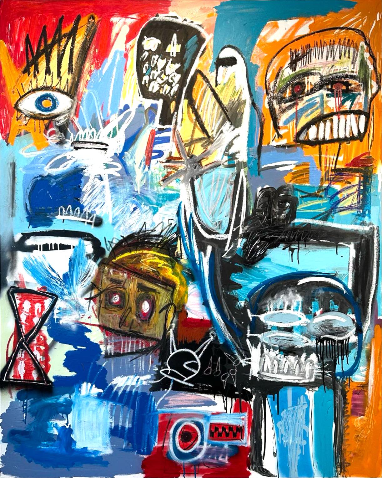 Huile, acrylique, pastels et bombe aérosol sur toile. 2023. Une pièce.