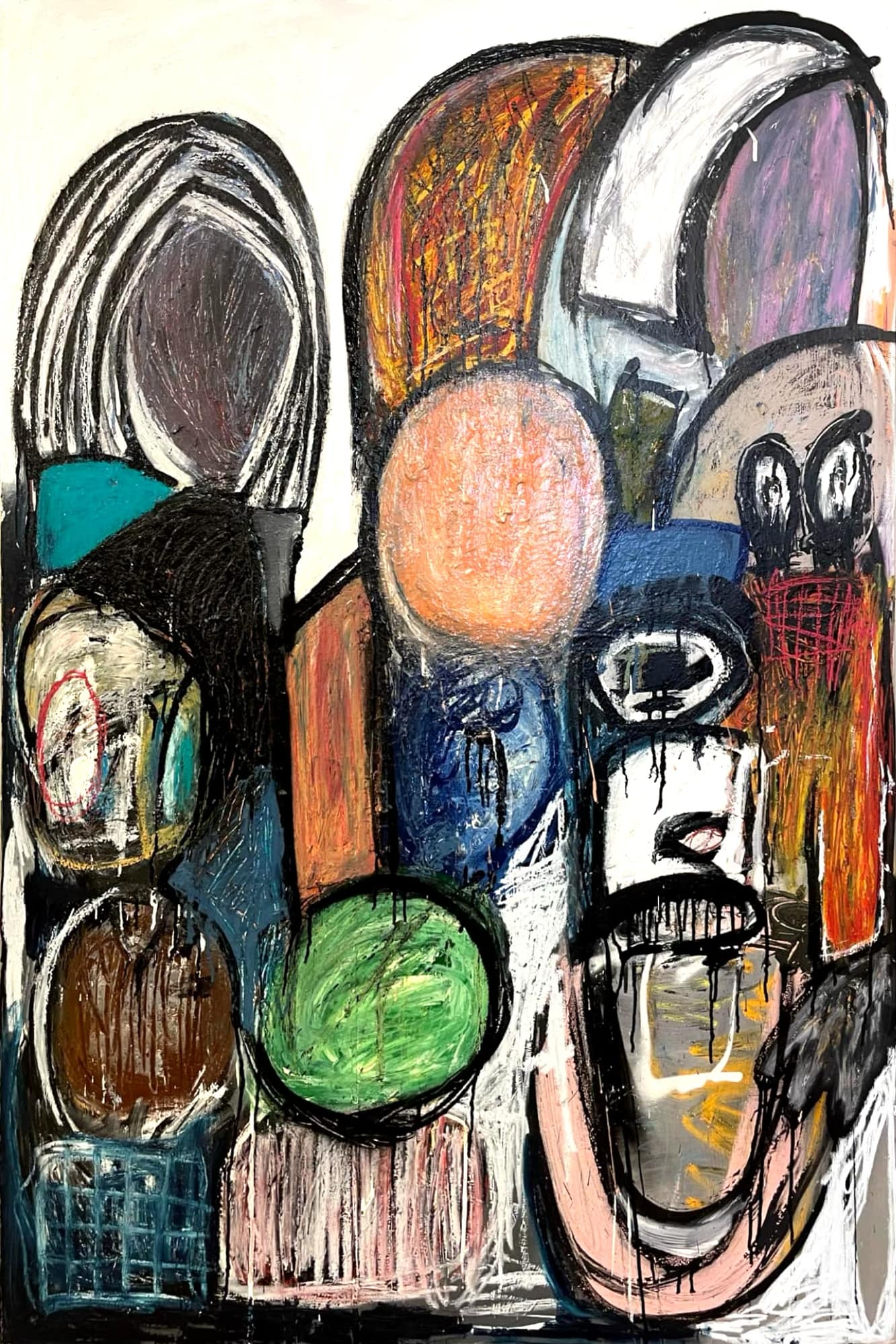 Oil, acrylic, pastels and spray paint on canvas. 2024. Onepiece.