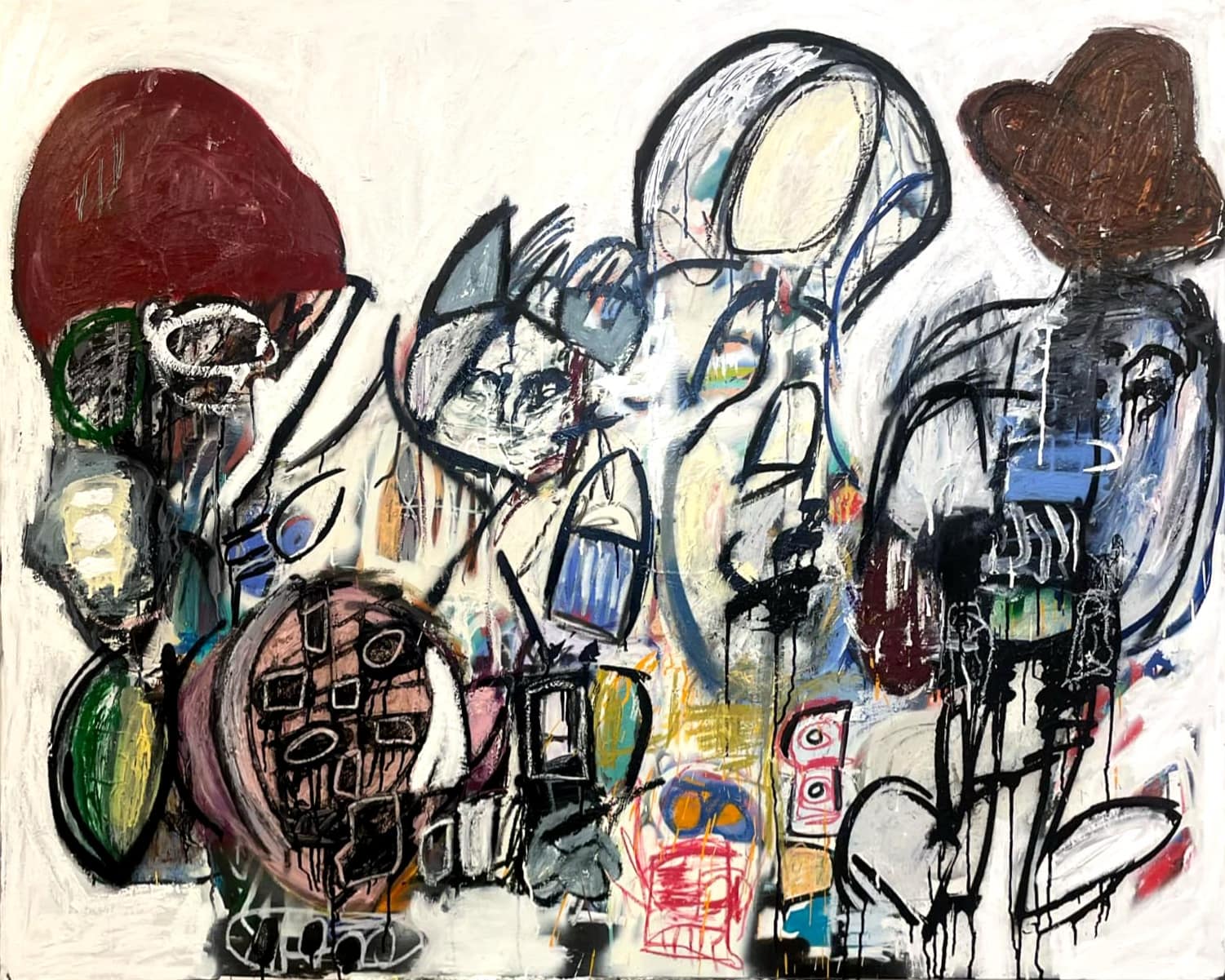 Oil, acrylic, pastels and spray paint on canvas. 2024. Onepiece.