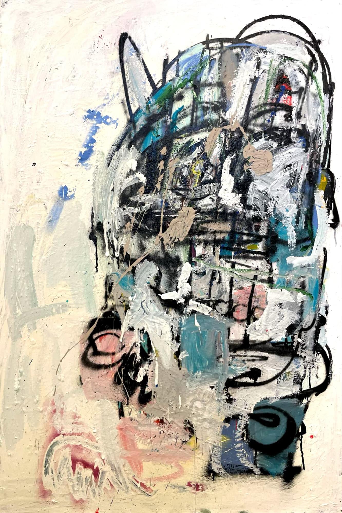 Oil, acrylic, pastels and spray paint on canvas. 2025. Onepiece.
