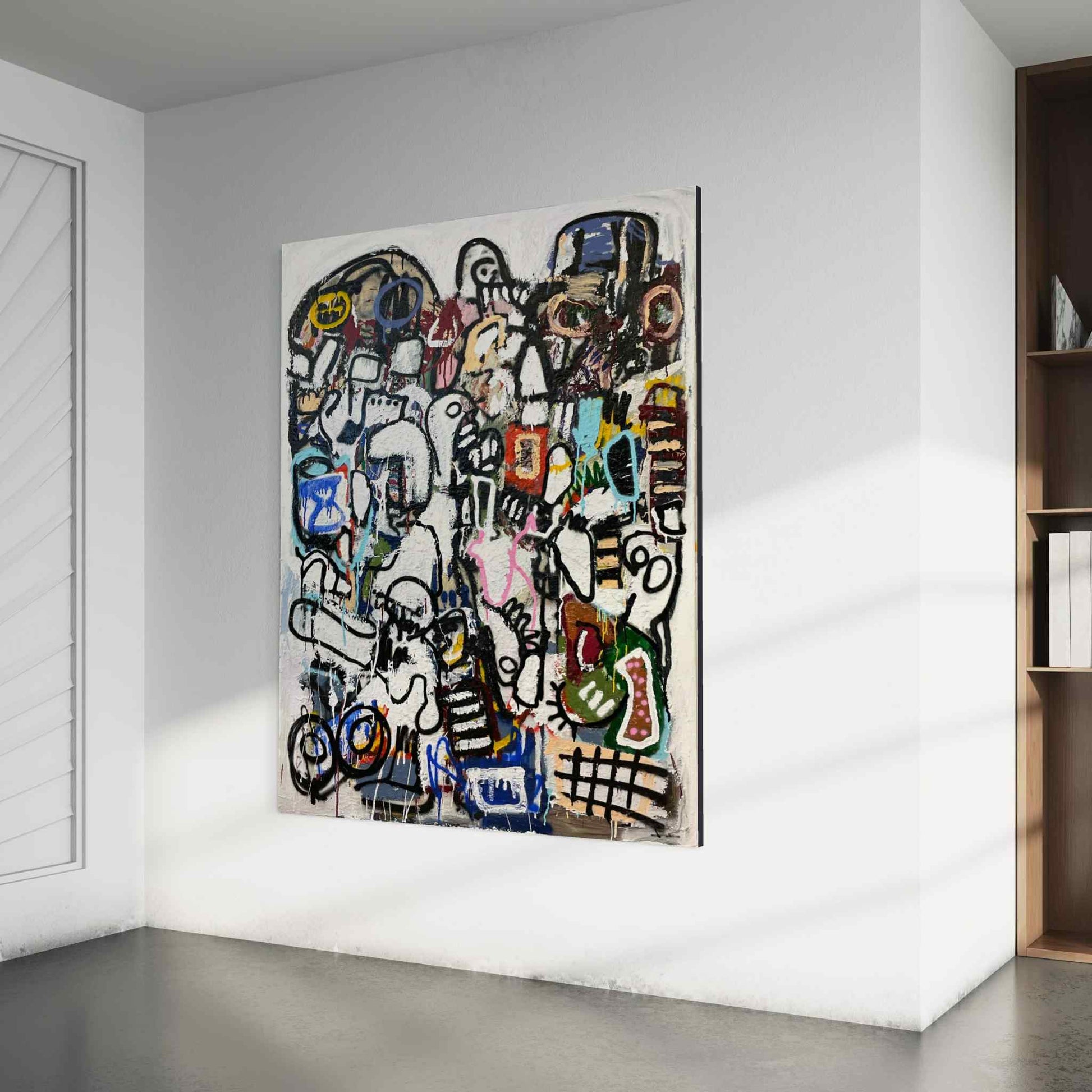 "Stop the Bombs" is a raw outcry from the heart of a dangerous, senseless world. Figures clash and collide in chaotic strokes, their distorted shapes echoing fear and confusion. The painting becomes a crowded battlefield of emotion, exposing how fragile our existence is when violence keeps tearing through what little meaning we have left.