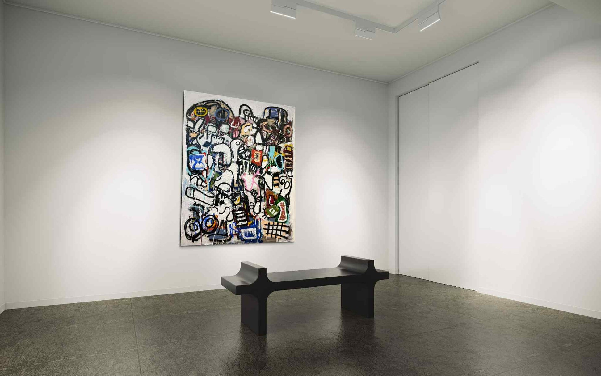 Oil, acrylic, pastels, and spray paint on canvas. 2025. One of a kind.