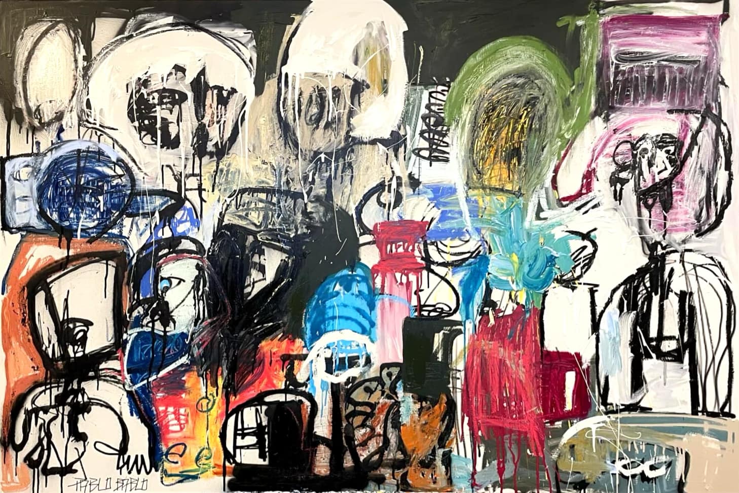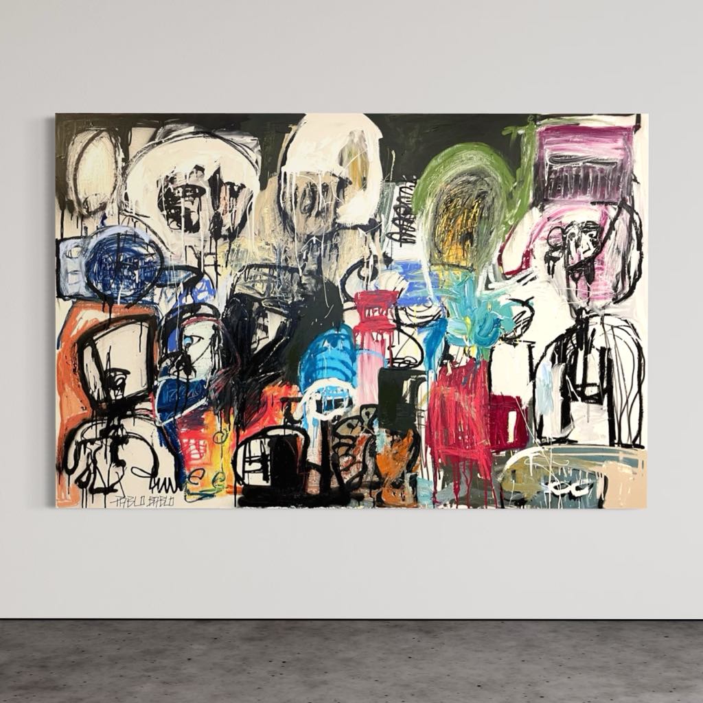 Blending elements of neo-expressionism, street art, and abstract futurism, this piece tells the story of beings longing for their true home—perhaps another planet, another existence, far from the weight of earthly struggles. The textures and forms seem to dissolve into movement, as if pulled by gravity toward the vast unknown.